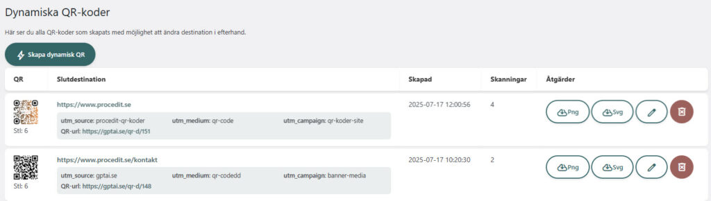 Pluginet stödjer UTM-taggar, kampanjspårning och dynamiska QR-kampanjer – perfekt för marknadsföring, event och digital närvaro.